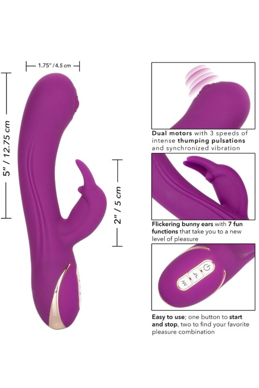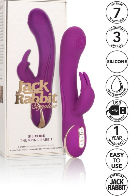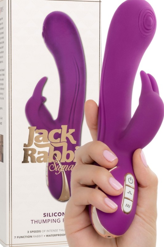 Почувствувајте ја моќта на внатрешниот ритам со силиконскиот зајак што удира. Овој премиум вибратор Jack Rabbit® има 7 функции на вибрации и 3 брзини на удирање на дршката за интензивна стимулација.