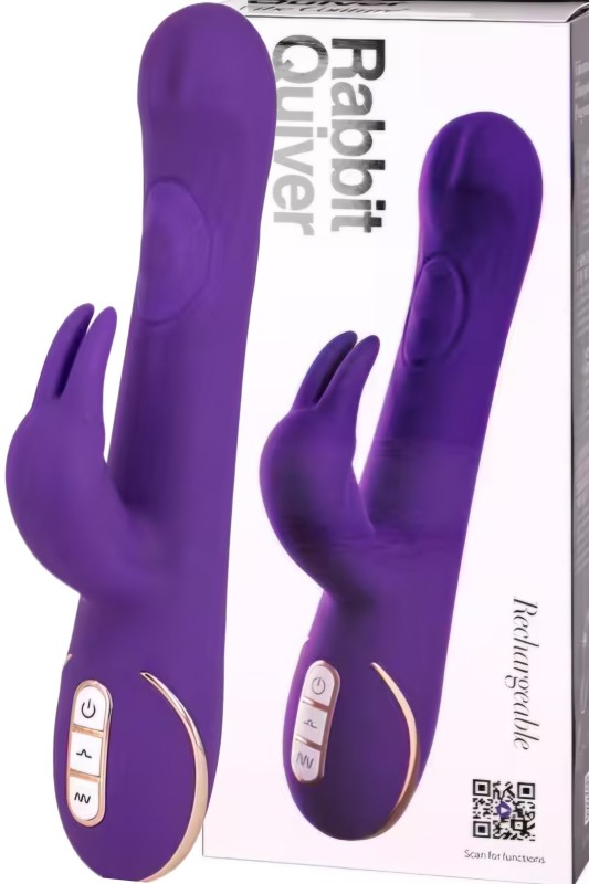 Флексибилниот вибратор Quiver во облик на зајак од Vibe Couture има пулсирачка и потиснувачка масажна топка во оската на G-точката и возбудлива вибрација во клиторичниот стимулатор. 3-те мотори имаат 3 брзини за пулсирачката масажна топка и 7 режими на вибрации. Сè може лесно да се контролира со копчето на играчката - заедно или одделно.
