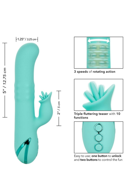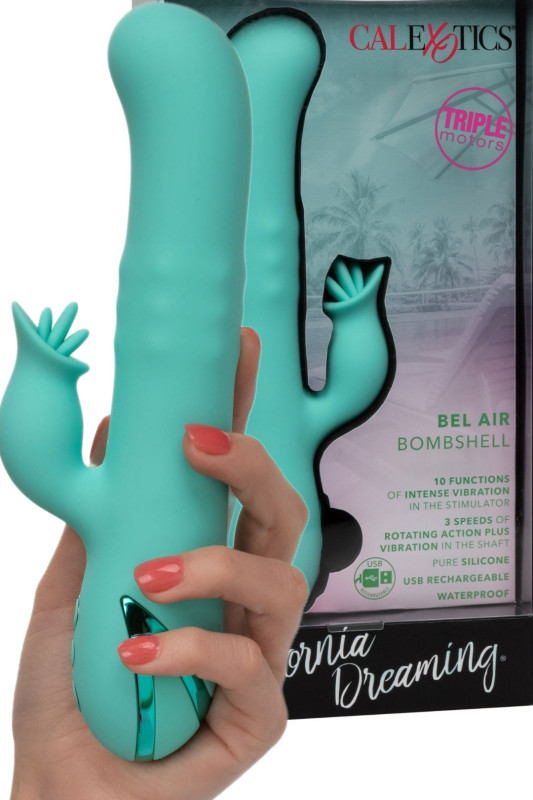 Доживејте ја вашата фантазија со луксузната бомба Bel Air од California Dreaming. Овој елегантен хипер луксузен вибратор има 10 функции на вибрации, 3 брзини на ротирање на вратилото и трепкачки зајачки закач за екстаза на целото тело. Безвременскиот силиконски вибратор е водоотпорен и може да се полни, со независни контроли на моторот, брава за патување и до 90 минути употреба.Тројните мотори нудат длабоки вибрации и возбудливи ротации за незаборавно задоволство.
