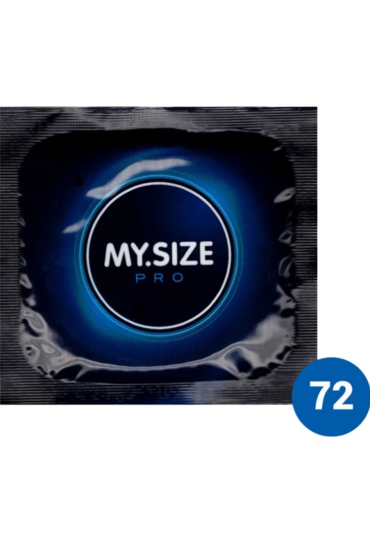 My.Size PRO 72mm се најголемите достапни кондоми односно XXL кондоми. Со ширина од 72mm, кондомот MY.SIZE 72 е најшироката и најбезбедната опција во глобално разновидниот поголем асортиман на My.Size кондоми. MY.SIZE PRO 72 мм е специјално дизајниран за мажи со долги и широки пениси.