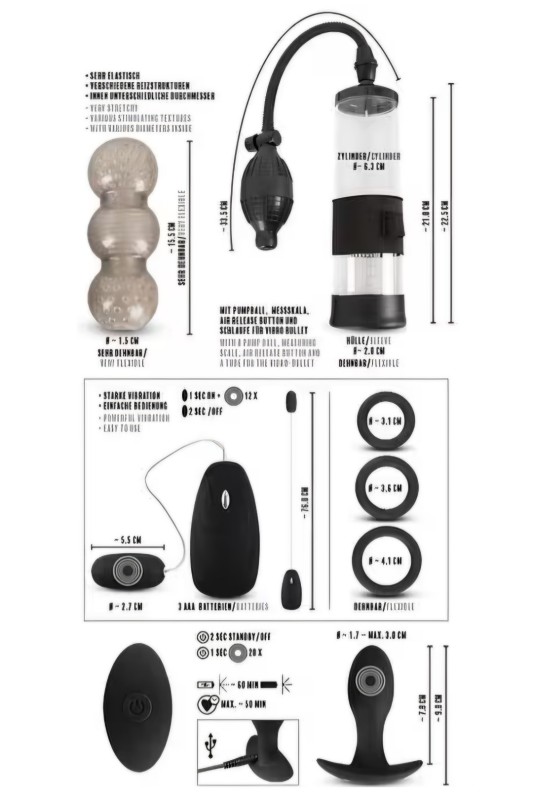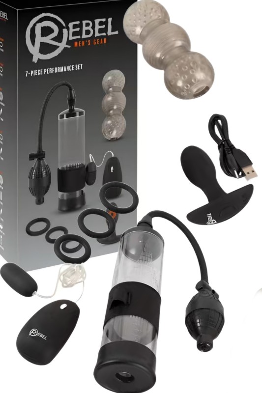 Комплет играчки од 7 дела за тренинг на пенис/мажественост со чувство на фелација, манжетни, анална стимулација и пријатно подобрување на ерекцијата.