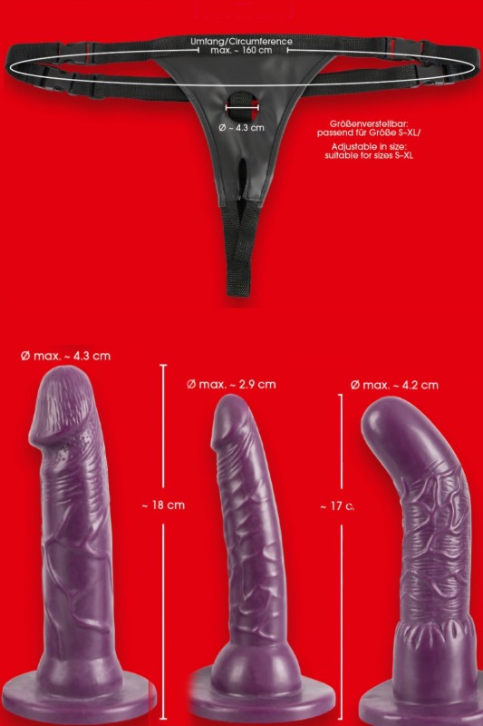Фантастичен Strap On сет на Bad Kitty. Танга без препони и прилагодлива. Нејзиното отворање овозможува истовремена пенетрација. Исто така, лесно можете да монтирате три различни дилда, и да си играте според желба.