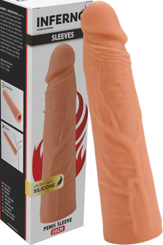 INFERNO од HIDDEN DESIRE претставува премиум екстензија од течен силикон, изработена за зголемување на задоволството и интензивирање на големината. Калапена за реалистични детали, има вени по должината на стеблото и дефинирана глава, нудејќи меко, свиленкасто и реалистично чувство на кожата. Оваа заштитна за тело, прилагодлива обвивка може да се скрати во основата за прилагодено прилегање.